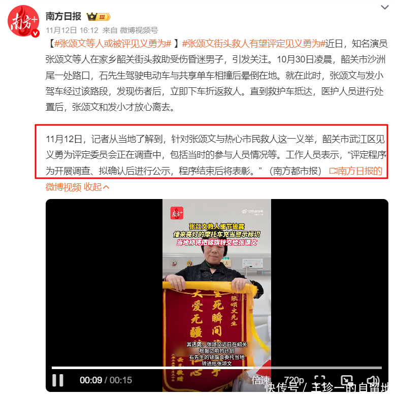 因为做了好事,当地见义勇为评定委员正在调查此事,后续将可能进行见义勇为表彰。